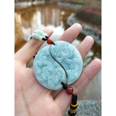 глава > saat mağazası > digər > Кулон из нефрита в форме сердца, натурального нефрита, дракона, феникса и рыбы Тайцзи